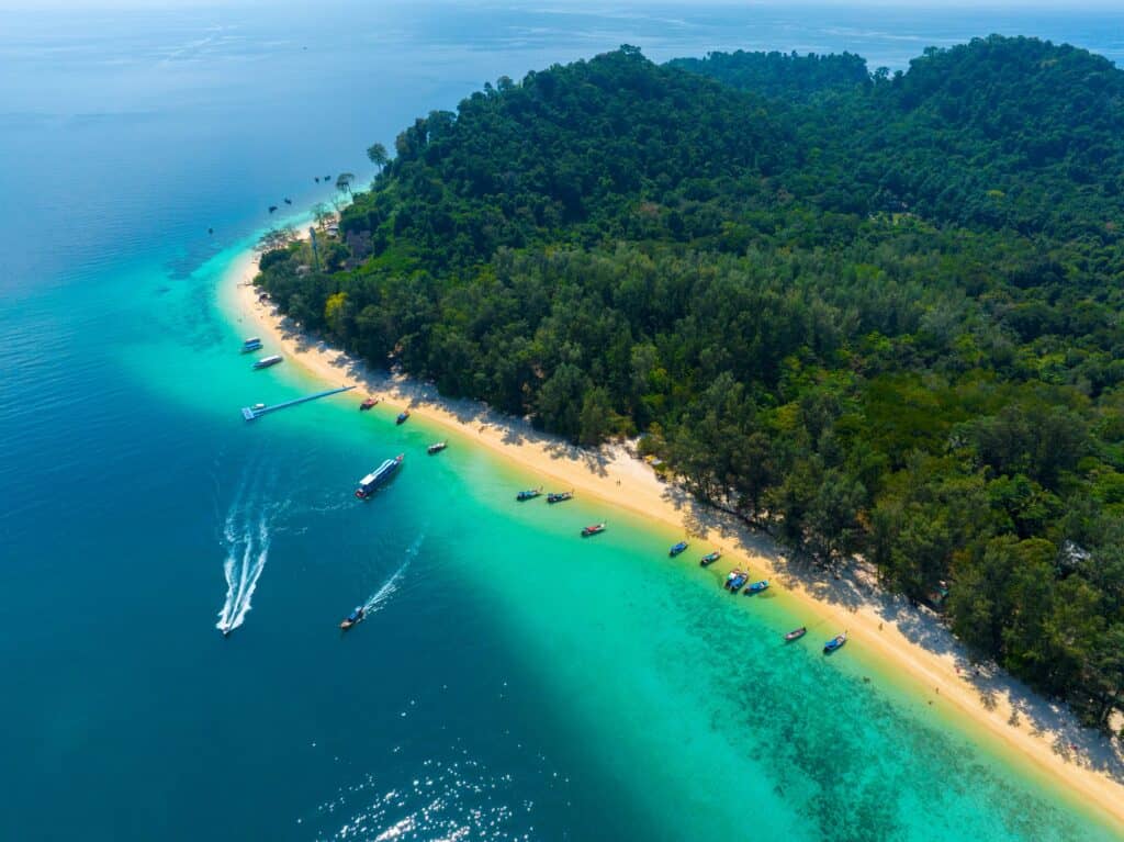 Four pristine beaches stretch along Trang’s coastline within Hat Chao Mai National Park, where limestone cliffs meet the Andaman Sea in dramatic fashion. This coastal sanctuary protects both marine and terrestrial ecosystems, featuring everything from mangrove forests to coral reefs. The park’s crown jewel is Hat Chao Mai Beach itself, a sweeping crescent of golden sand backed by casuarina trees and dramatic karst formations that rise directly from the turquoise waters.