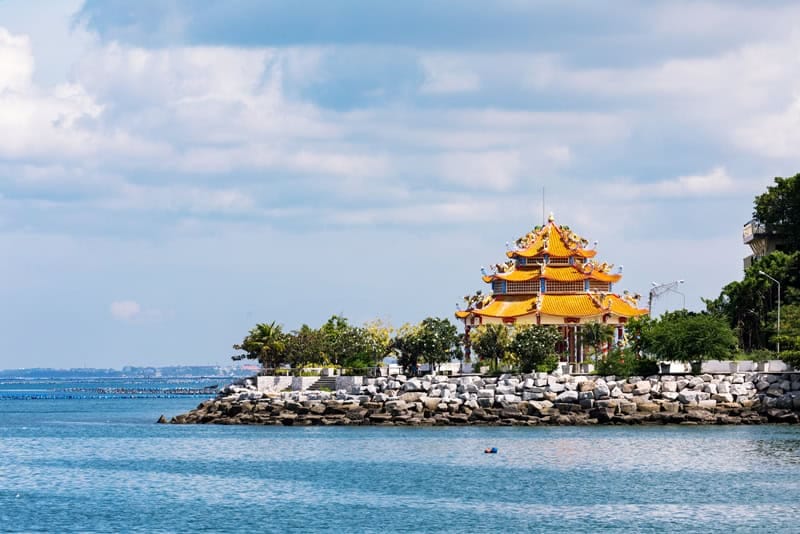 Connected to the mainland by a concrete bridge, Ko Loi Si Racha offers visitors an unusual island experience without needing a boat. This small rocky outcrop in Chonburi province combines natural coastal beauty with cultural significance, featuring a prominent Chinese temple that draws both pilgrims and curious travelers. The island’s accessible location makes it perfect for those wanting to explore Thailand’s maritime culture while staying close to urban conveniences.