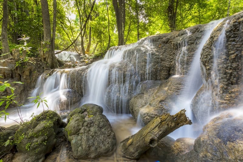 Deep within Kanchanaburi’s dense jungle landscape, Krien Kravia Waterfall offers one of the region’s most rewarding aquatic adventures. This multi-tiered cascade plunges through limestone cliffs surrounded by pristine rainforest, creating a series of emerald pools perfect for swimming. Unlike many of Thailand’s more crowded waterfalls, Krien Kravia maintains its wild character, accessible only to those willing to venture off the beaten path through Sangkhla Buri’s rugged terrain.