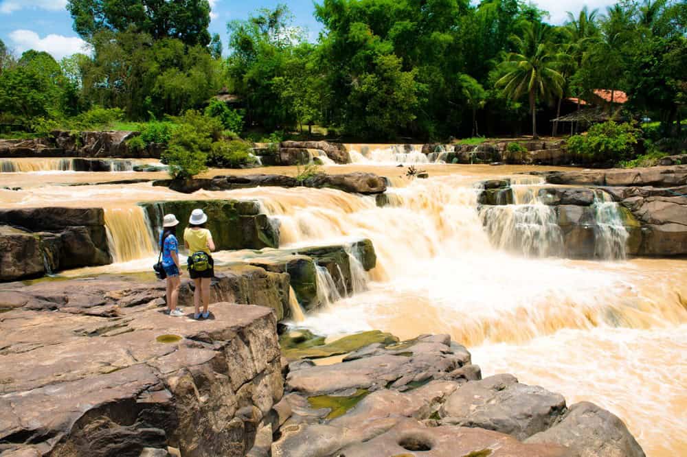Powerful cascades thunder down limestone cliffs at Namtok Kaeng Song, creating one of Sukhothai’s most impressive multi-tiered waterfalls. The name translates to “Two Rapids Waterfall,” referring to the distinct levels where water crashes over rocky ledges before pooling in natural basins below. Unlike many tourist-heavy waterfalls in Thailand, this natural wonder maintains its wild character, surrounded by dense tropical forest that feels untouched by mass tourism.