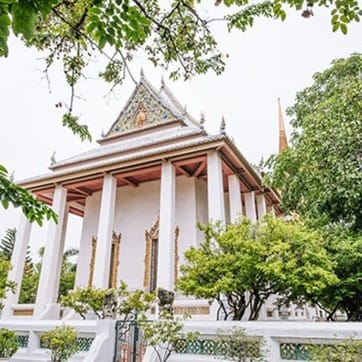 Wat Sommanat Wihan or Wat Sommanat Ratchawora Wihan is categorized as the second degree of Thailand’s royal monastery. It is situated at 646, Krung Kasem Road, Somanas Sub-District, Pomprabsatruphai District, Bangkok. The temple was built by the will of King Rama IV in 1853 as His Majesty King Rama IV aimed to build a royal temple as similar as the one in Krungsri Ayuttaya. His Majesty built this temple in order to commemorate Somdej Phranangchao Sommanatwattanawadi. This is why he bestowed the name Wat Sommanat Wihan to this temple. 150 years after the temple was built, it is such a perfect place for monks who were seeking a place to practice the dharma. This is because the temple itself is not much far from the city which is the ideal location of temple as stated in Tripitaka. The art inside the temple is obviously an art of Rattanakosin period. There are beautiful murals inside ubosot and sanctuary. The principle Buddha image of the ubosot is from Wat Rachathiwat named Phra Sam Buddha Siri and the principle Buddha image of the sanctuary is named Phra Sam Buddha Sommanat Wattanawadinartbophit. Besides, there are two pagodas around the area. The big one contains Buddha’s relics (The pagoda was covered with gold) and the small one (Mon Chedi) is as very beautiful as the one that contains Buddha’s relics in India. Presently, there are some constructions ongoing right now such as the 150 years building, Salaksanalai School, Sala Sathit, 80 years of Somdej Phrawannarat building, etc. Also, there are Wat Sommanat school and the military graveyard situated in the temple area as well. The highlight of the temple is that it was built and designed very well as it got a very well made construction plan. Plus, the temple is located in the central of Bangkok and it is surrounded by many official places. Another highlight of the temple is that the crematory was placed outside the temple fence as they purpose to separate the crematory and the funeral thingy from the monk area. F